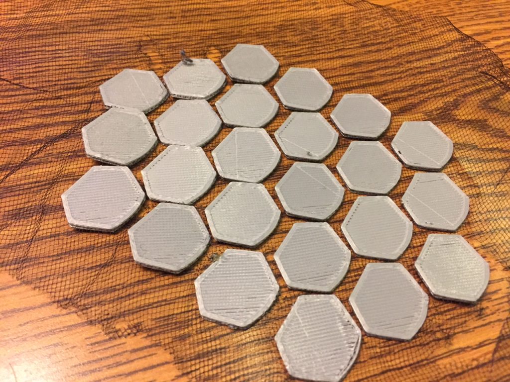 In our upcoming production of Macbeth at work, one of the many spooky ingredients that the Three Witches drop into their wondrous cauldron is "scale of dragon." To that end, I'm helping our props department out by printing some dragon scales onto some toule. The design is essentially some raised, horned scales repeated in a hexagonal pattern.